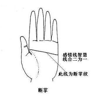 有断掌纹并出现智慧线,就被称为智慧线型假断掌。这样手相的女性胆大心细,有敏锐的直觉,有灵性。对美术敏感,富有艺术气质,富于创造性,是***家、艺术家、实业家、企业家的征象。晚年容易突发心脑血管疾病。