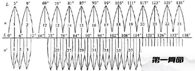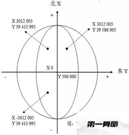 例如:我国首都位于东经39,447,672、北纬4,419,516附近(三度带坐标),属于39带(对应117°),其西侧为38带(对应114°),其东侧为40带(对应120°)。