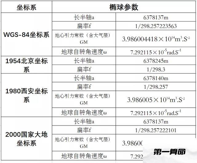 以上四种坐标采用的椭球参数详见下表为: