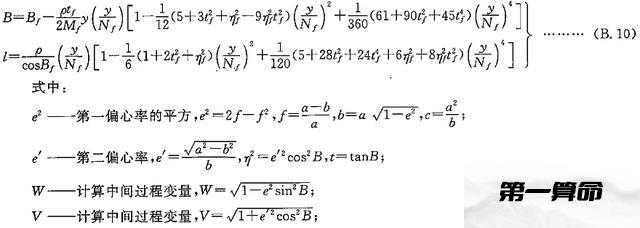 高斯投影反算公式: