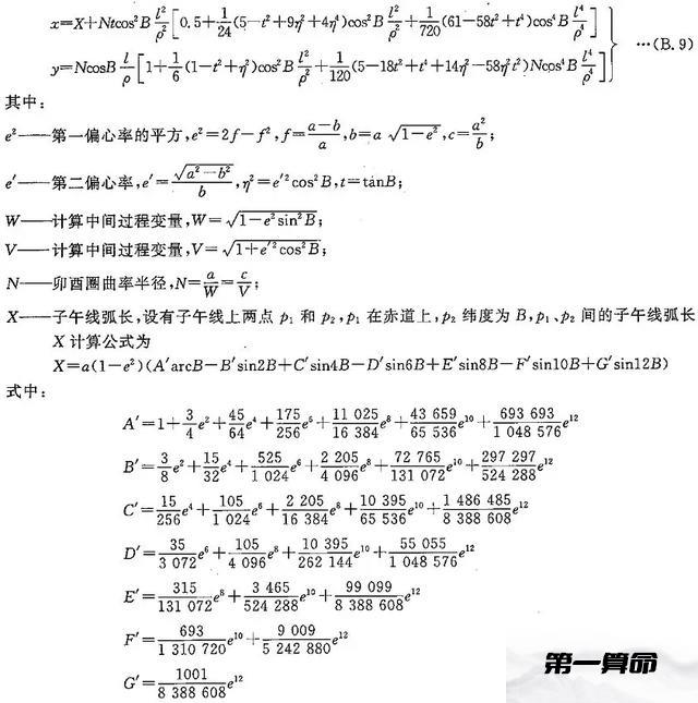 高斯投影正算公式: