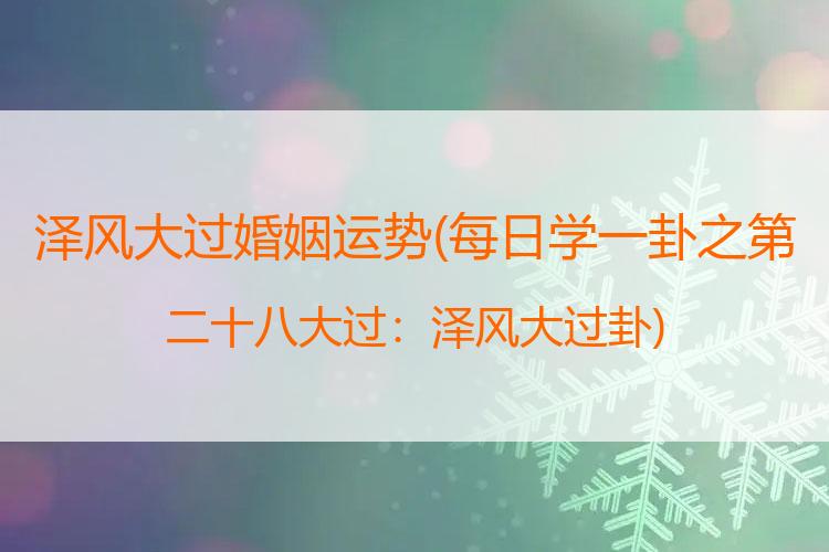 摘要:每日学一卦之第二十八 大过:泽风大过卦大过:上卦兑为金为泽为悦,下卦巽为木为风为顺,上泽下木,水漫过树是洪水之象,水多了就会酿成洪水,大过是大为过度的意思。卦辞中以栋梁弯曲作为比喻。栋梁弯曲就是因为横梁中部太粗,四阳在中间,两阴在头尾,中间过强,梁是着力于两头的,柔弱的两头不胜重压,以致弯曲房子就要