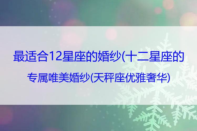摘要:十二星座的专属唯美婚纱,天秤座优雅奢华,摩羯座如海洋公主!婚纱是每个女生都想要穿的裙子,因为它代表着幸福,代表着这一刻你是最美的新娘,穿上美丽的婚纱,吸引着所有人的目光,充满着幸福感,愉悦感。一起看看十二星座的专属唯美婚纱,天秤座优雅奢华,摩羯座如海洋公主!双子座唯美婚纱双子座很会哄恋人开心,虽然总