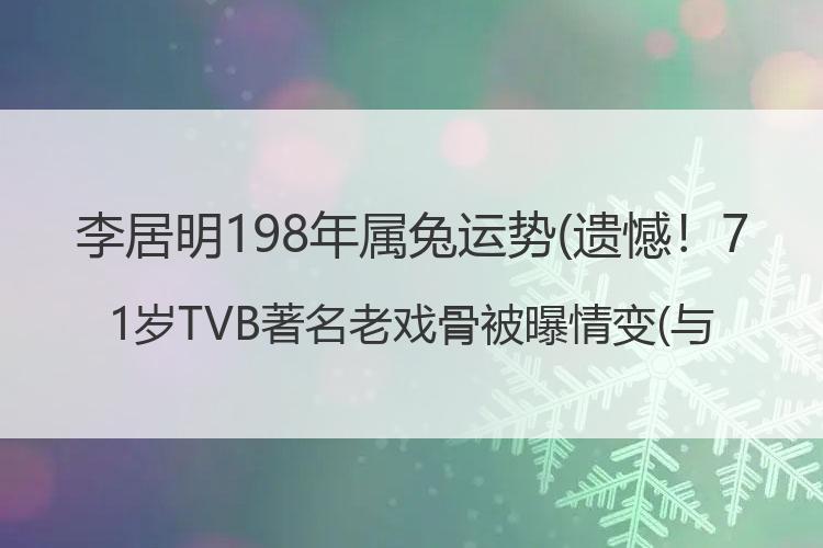 遗憾!71岁TVB著名老戏骨被曝情变,与小17岁内地圈外男友分手