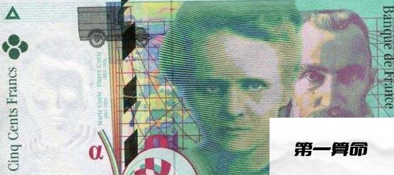 法郎最大的面值是500元,背后印着居里夫人和她的丈夫,尽管居里夫人深爱着她的祖国波兰。200发光的背后是埃菲尔,埃菲尔铁塔的建造者是著名的工程师。此外,还有塞尚,德彪西,孟德斯鸠,《小王子》圣埃克苏佩里等作者。