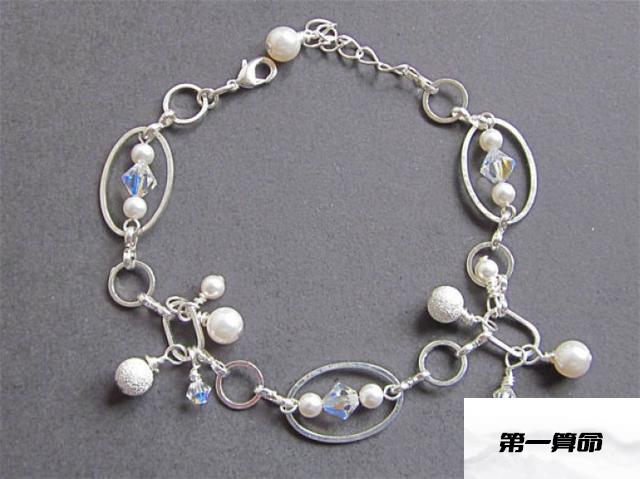 水瓶座专属仙女手镯施华洛世奇风格上,圆形珍珠与椭圆形小圈相连,卓尔不群。