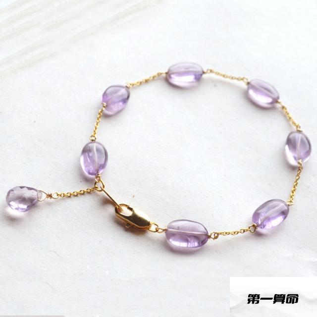 处女座专属仙女手镯天然浅紫色紫水晶椭圆扁珠,14k金线串联成美丽的公主梦。