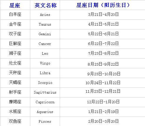 黄道十二星座查询:白羊座、狮子座、射手座、摩羯座、水瓶座、双鱼座、天秤座、天蝎座、双鱼座