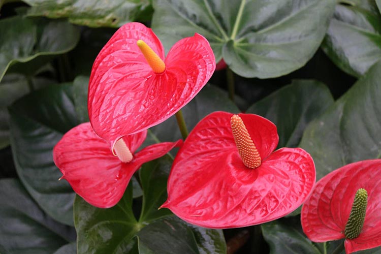红掌是一种常见的室内花卉,因为是红掌的颜色是大红色的,所以很多人都会认为它象征吉祥如意,鸿运当头,红掌中间的金黄色预示着招财进宝,是客厅花卉中最值得推荐的一种。