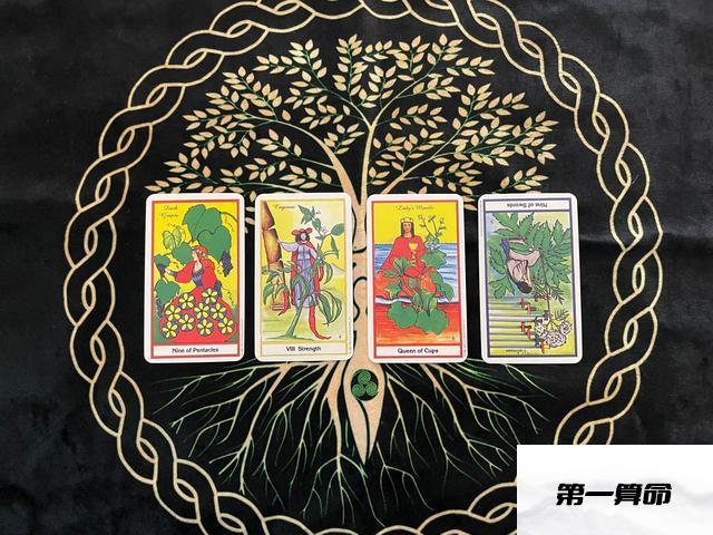 二组牌:星币九 力量牌 圣杯皇后 宝剑九逆位