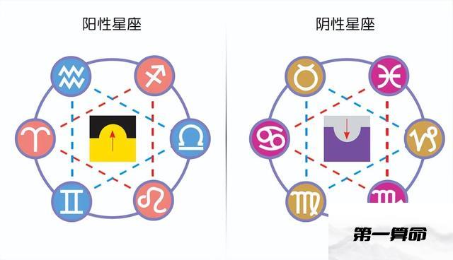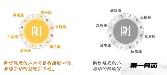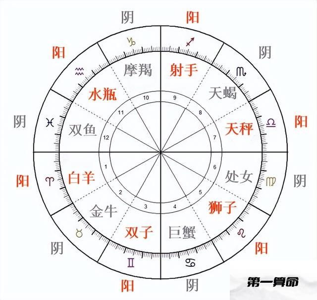 12星座2分法-阴阳:这是最直接、最自然的分类方法。星座从牡羊座开始,单数为阳,双数为阴。阳、阴、阳、阴按逆时针排列,如下图所示: