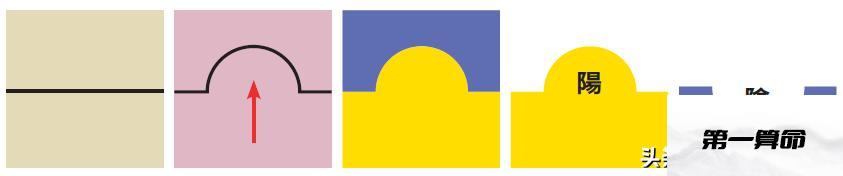 凸出的一面是阳,凹陷的一面是阴。阳是主动的一面,阴是与阳合作形成的反向面。